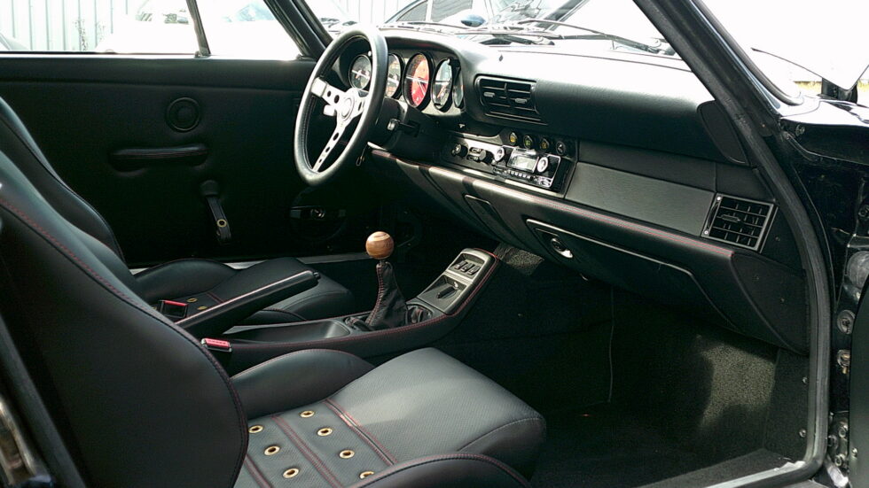 Couleur Gris Craie, Pare-chocs avant/arrière & capot en polyester, Ailes avant modifiées, Levier rehaussé, Moquette RS & sièges Classix en tissu, Moteur 3.2L avec arbres à cames sport, Boîtier reprogrammé - env. 245 ch, Echappement SSI, Châssis sport, Freinage amélioré avec étriers avant de 964