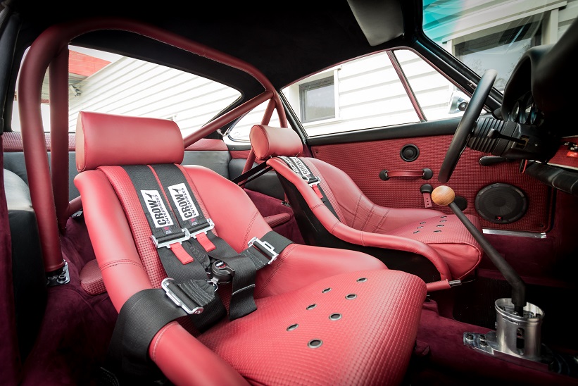 Couleur Gris Craie, Pare-chocs avant/arrière & capot en polyester, Ailes avant modifiées, Levier rehaussé, Moquette RS & sièges Classix en tissu, Moteur 3.2L avec arbres à cames sport, Boîtier reprogrammé - env. 245 ch, Echappement SSI, Châssis sport, Freinage amélioré avec étriers avant de 964