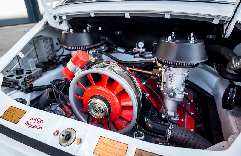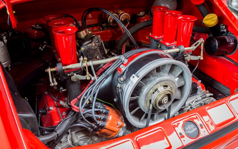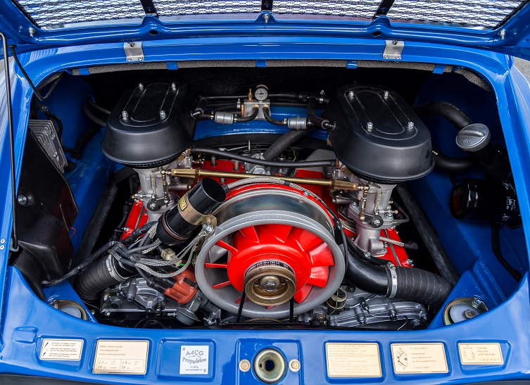 Base 911 SC de 1979, moteur refait à neuf, jantes MiniLit, poids en ordre de marche 1026 kg.