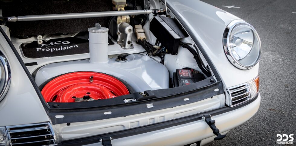 Base 911 SC de 1979, moteur refait à neuf, jantes MiniLit, poids en ordre de marche 1026 kg.