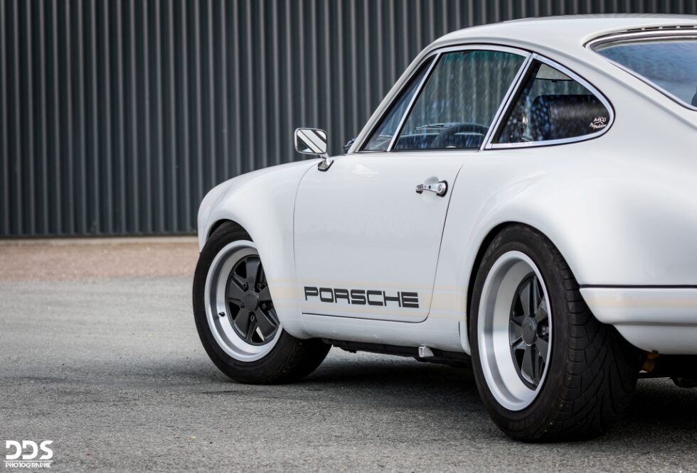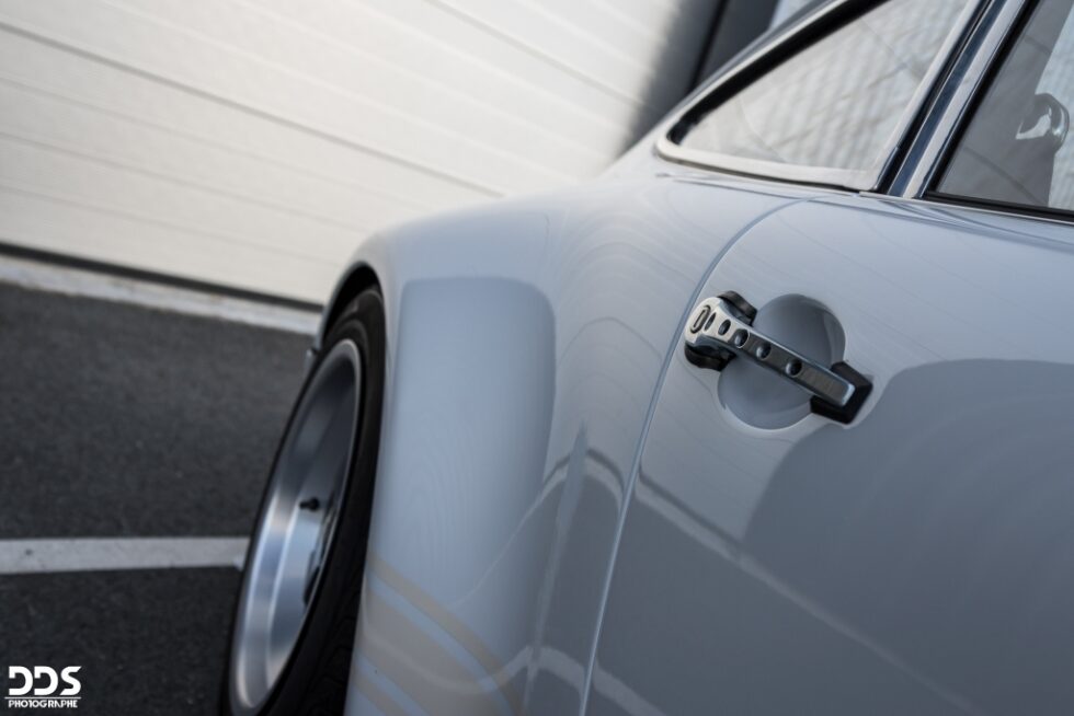 Couleur Gris Craie, Pare-chocs avant/arrière & capot en polyester, Ailes avant modifiées, Levier rehaussé, Moquette RS & sièges Classix en tissu, Moteur 3.2L avec arbres à cames sport, Boîtier reprogrammé - env. 245 ch, Echappement SSI, Châssis sport, Freinage amélioré avec étriers avant de 964