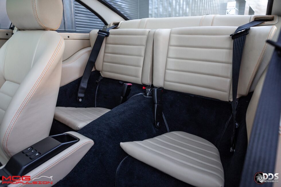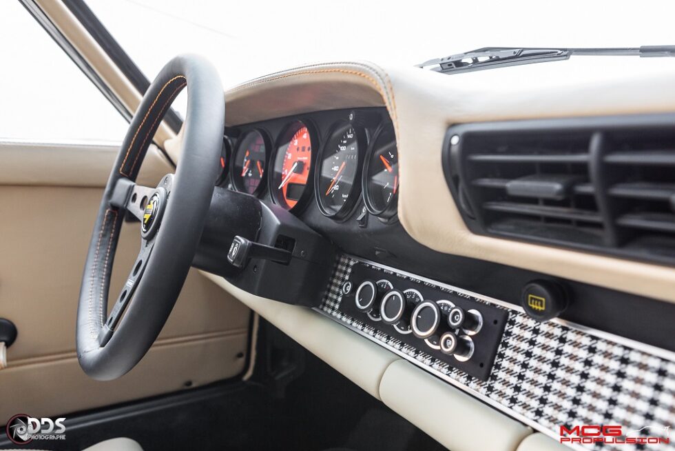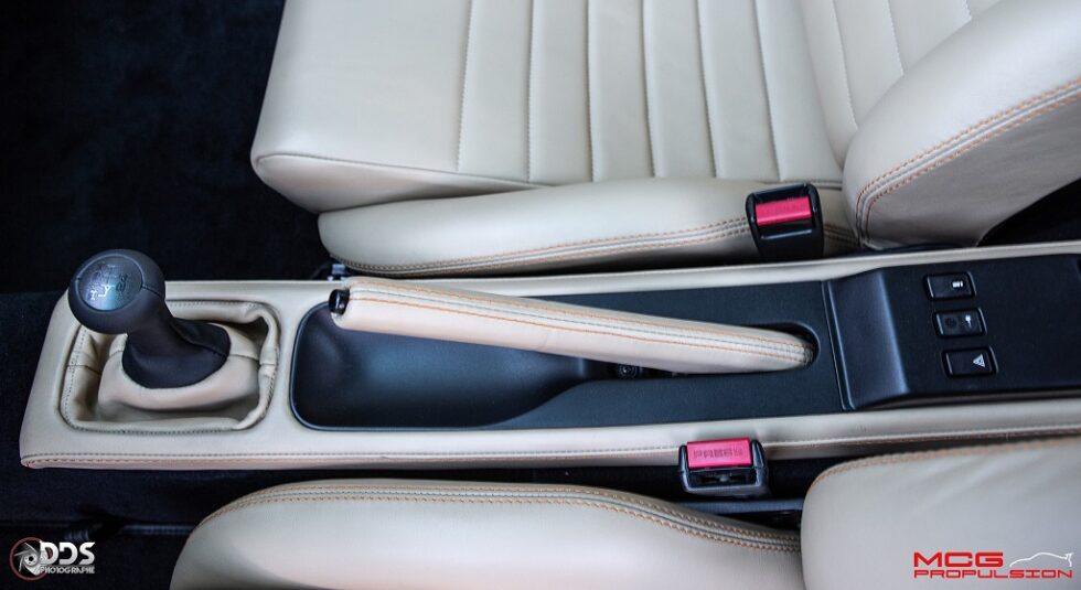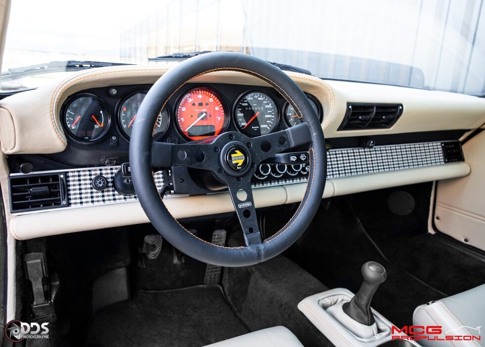 Couleur Gris Craie, Pare-chocs avant/arrière & capot en polyester, Ailes avant modifiées, Levier rehaussé, Moquette RS & sièges Classix en tissu, Moteur 3.2L avec arbres à cames sport, Boîtier reprogrammé - env. 245 ch, Echappement SSI, Châssis sport, Freinage amélioré avec étriers avant de 964