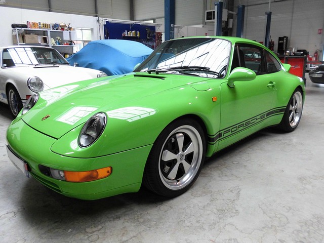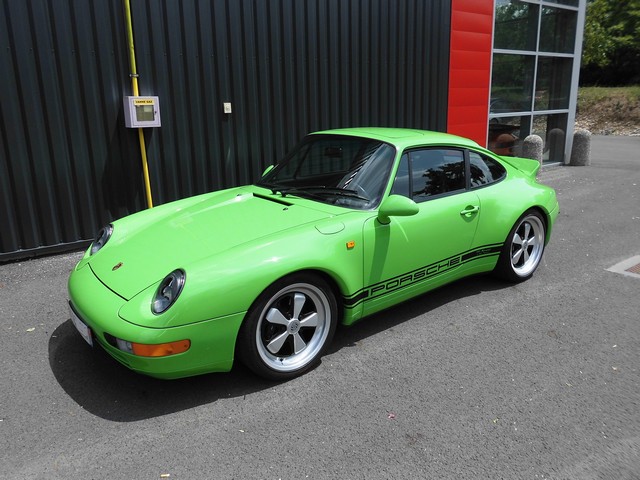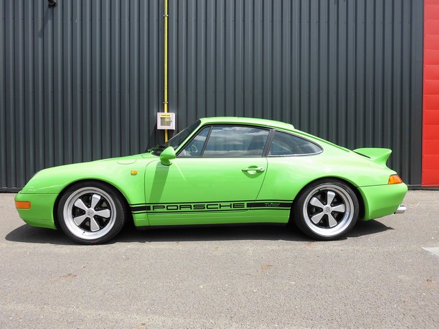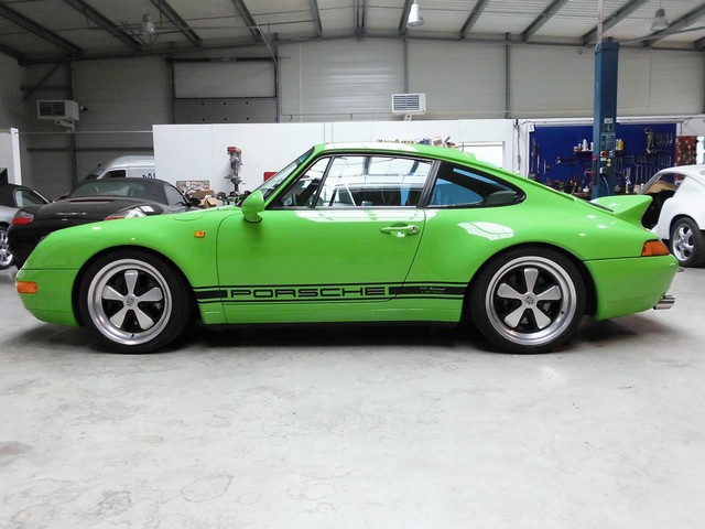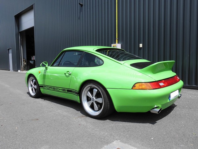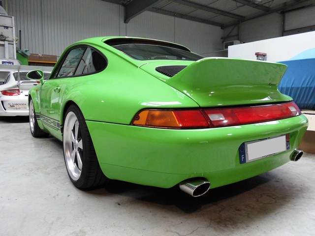 Transformation 993 C2, évocation look rétro, changement de couleur complet, jantes Fuchs 18'.