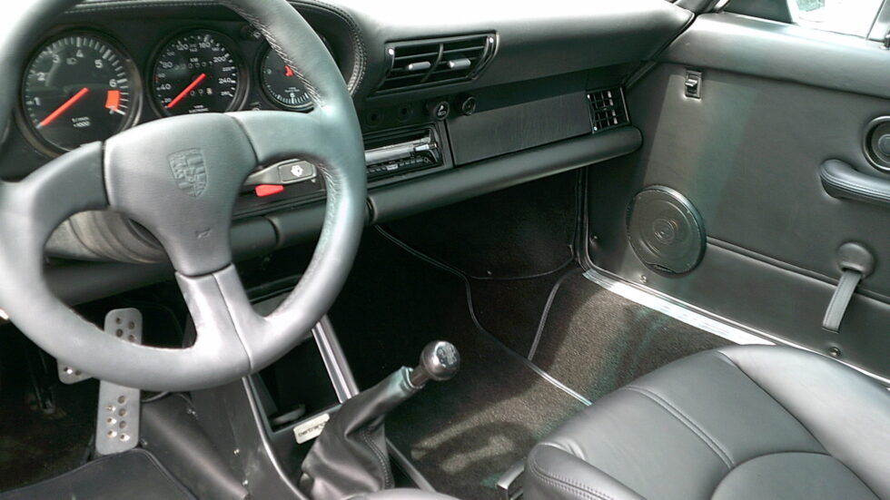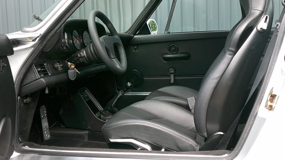 Couleur Gris Craie, Pare-chocs avant/arrière & capot en polyester, Ailes avant modifiées, Levier rehaussé, Moquette RS & sièges Classix en tissu, Moteur 3.2L avec arbres à cames sport, Boîtier reprogrammé - env. 245 ch, Echappement SSI, Châssis sport, Freinage amélioré avec étriers avant de 964