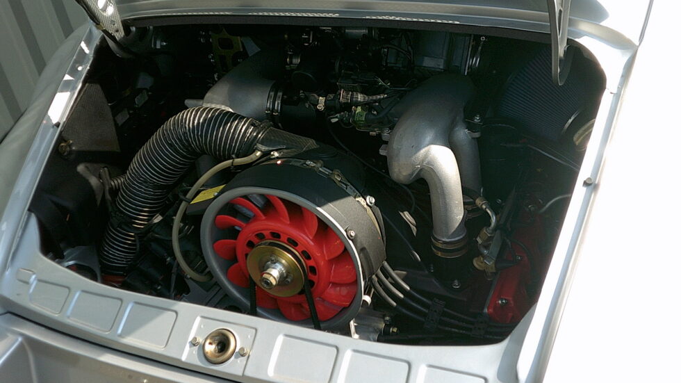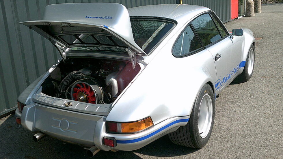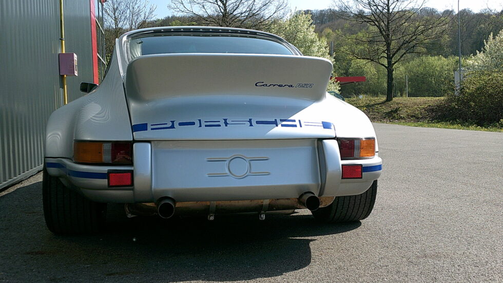 Couleur Gris Craie, Pare-chocs avant/arrière & capot en polyester, Ailes avant modifiées, Levier rehaussé, Moquette RS & sièges Classix en tissu, Moteur 3.2L avec arbres à cames sport, Boîtier reprogrammé - env. 245 ch, Echappement SSI, Châssis sport, Freinage amélioré avec étriers avant de 964