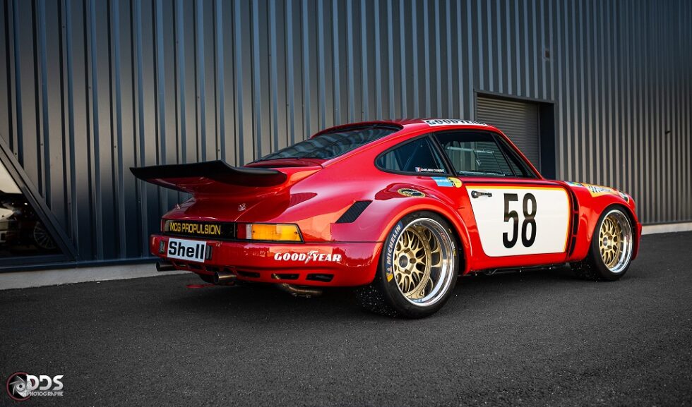 Ce n'est pas vraiment un backdating, puisque nous sommes partis d'une caisse de 1975. Nous avons fait au niveau look la réplique de la voiture du Gelo Racing Team qui a couru au Mans en 1975. Par contre, nous avons optimisé ses performances : moteur 3L8 360 cv, boite 6 pont court, châssis ER, 946 kgs, voir essai sur émission Direct Auto.