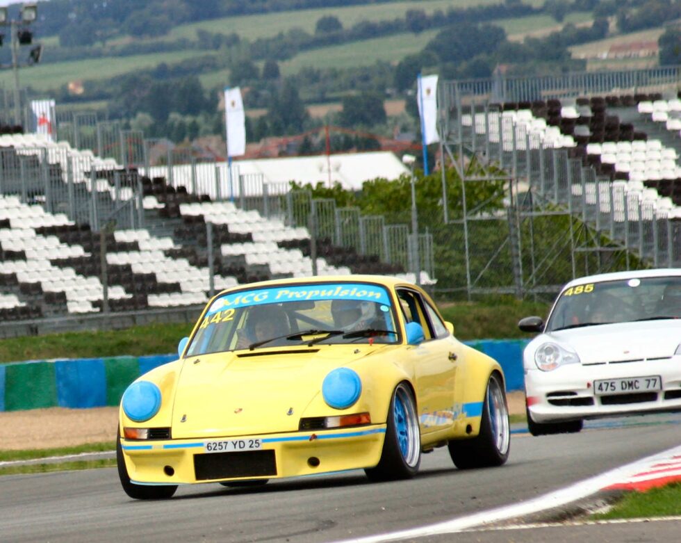 Cette première réalisation de MCG sur base 2L7, a été préparée pour le circuit. Moteur CUP 3L8 de plus de 310cv, boite 964RS pont, court, gros freins, suspensions RSR, arceau cage spécifique, poids optimisé à 950 kgs. Efficacité redoutable. Cette voiture a remporté plusieurs podium en championnat Endurance VHC.