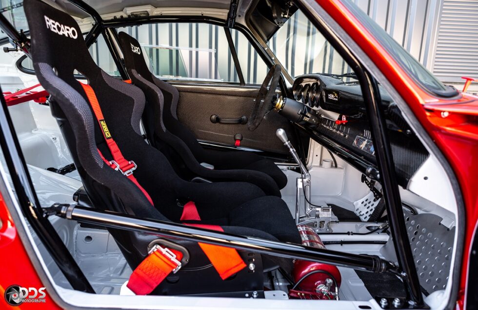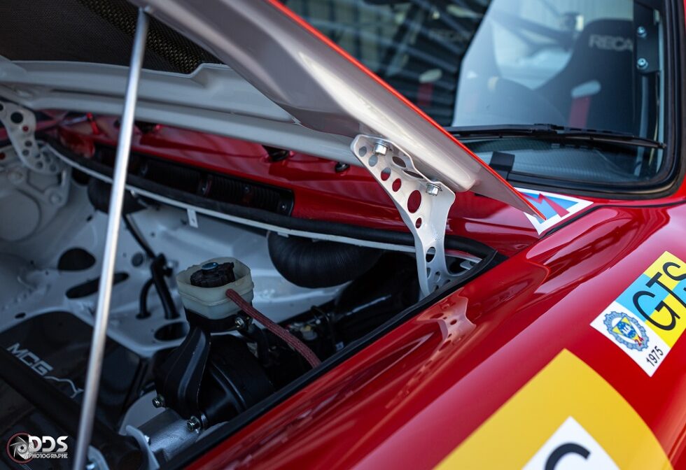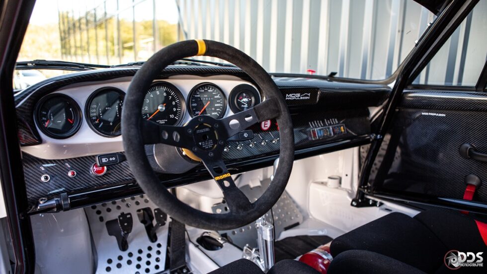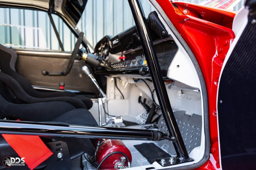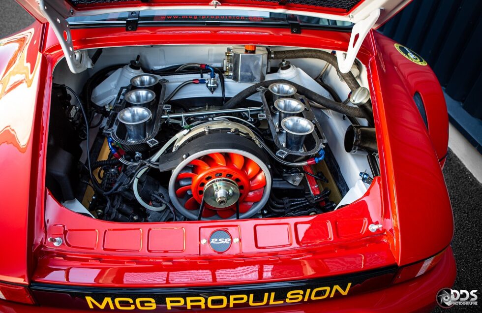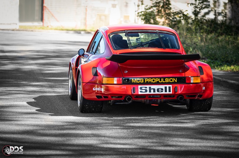 Cette première réalisation de MCG sur base 2L7, a été préparée pour le circuit. Moteur CUP 3L8 de plus de 310cv, boite 964RS pont, court, gros freins, suspensions RSR, arceau cage spécifique, poids optimisé à 950 kgs. Efficacité redoutable. Cette voiture a remporté plusieurs podium en championnat Endurance VHC.