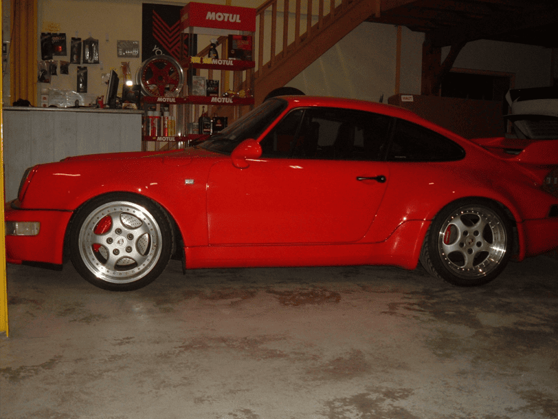 964 C4 en look RSR : prépa MCG : ailes AV turbo, poly ou acier, ailes AR acier soudées bord à bord pare choc AV et AR RSR, aileron RSR intérieur : sièges de type RS, moquette légère, panneaux de portes RS, arceau, etc... jantes 18' peinture complète neuve Préparation moteur possible de 280 cv à 350cv.
