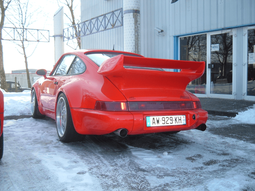 Transformation 993 Bi Turbo en look 993 GT2 (GT), changement de couleur complet en blanc, pas de modifications sur l'intérieur et le moteur.
