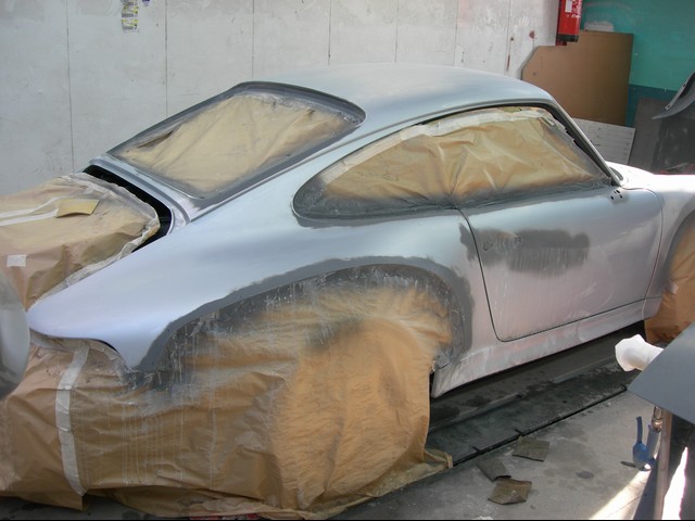 Transformation 993 Bi Turbo en look 993 GT2 (GT), changement de couleur complet en blanc, pas de modifications sur l'intérieur et le moteur.