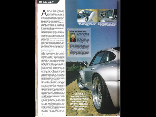 Transformation 993 BiTurbo en look 993 GT2 Kit complet carbone Reportage dans RS Magazine N° 73 voir rubrique articles de presse.
